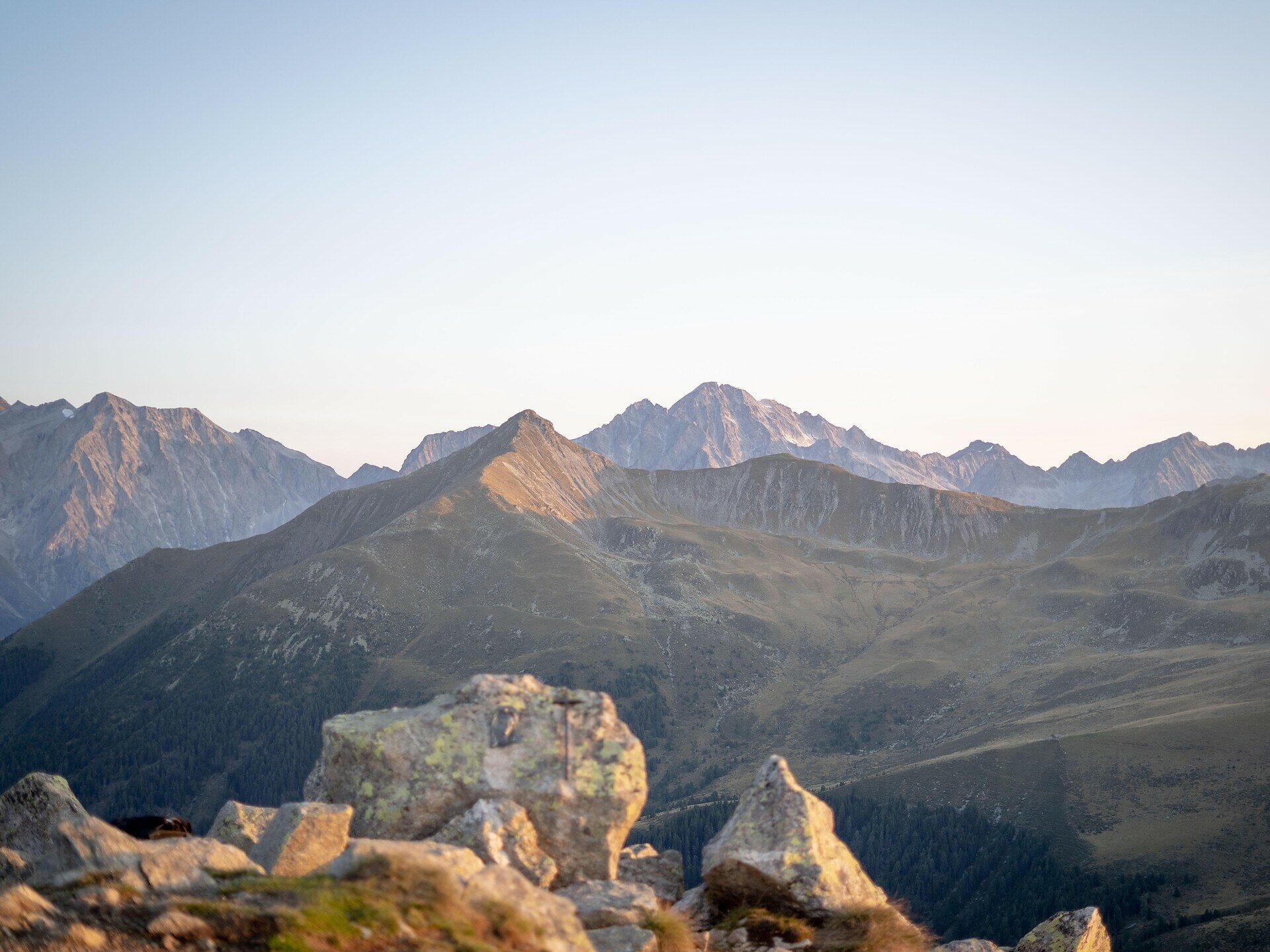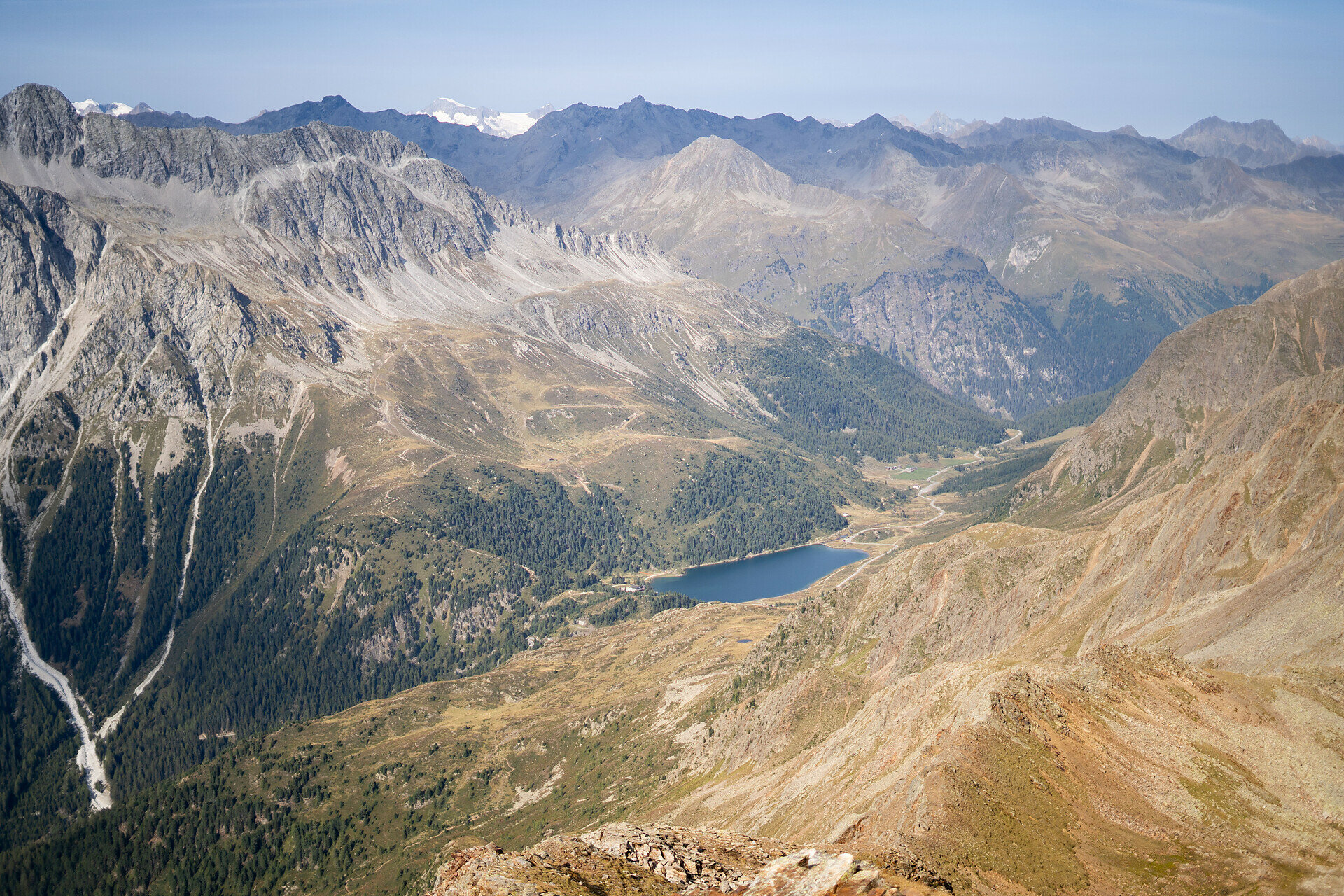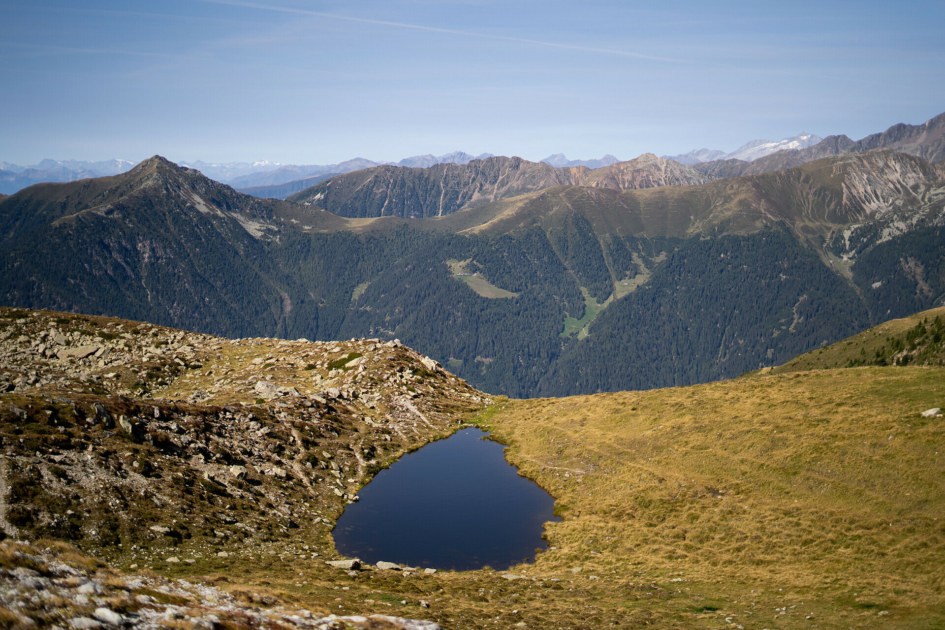 Lohnenswerte, lange Wanderung mit atemberaubendem Ausblick auf die Rieserfernergruppe, die Ostalpen (mit Großglockner) und die Dolomiten.