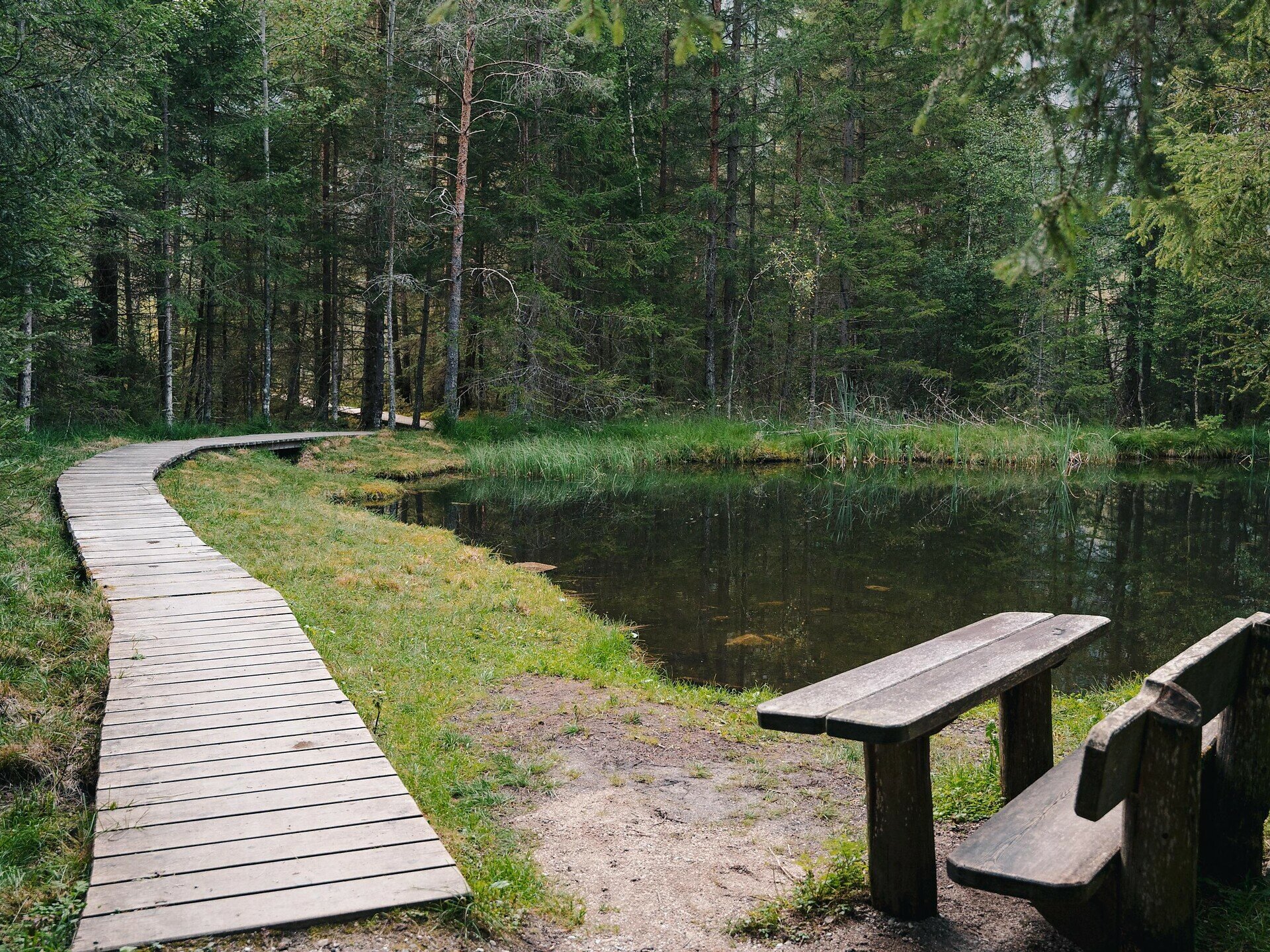 Ausgehend vom Kulturhaus Oberrasen verläuft der Weg zunächst gemütlich entlang der Straße bis zum Waldrand. Von dort taucht man in das geschützte Biotop Rasner Möser ein – ein faszinierendes Moorgebiet mit Naturlehrpfad. Über Holzstege führt der Weg durch das sensible Feuchtgebiet und ermöglicht ein intensives Naturerlebnis, ohne die Umgebung zu beeinträchtigen. Besonders für Kinder ist dieser Abschnitt ein echtes Highlight.