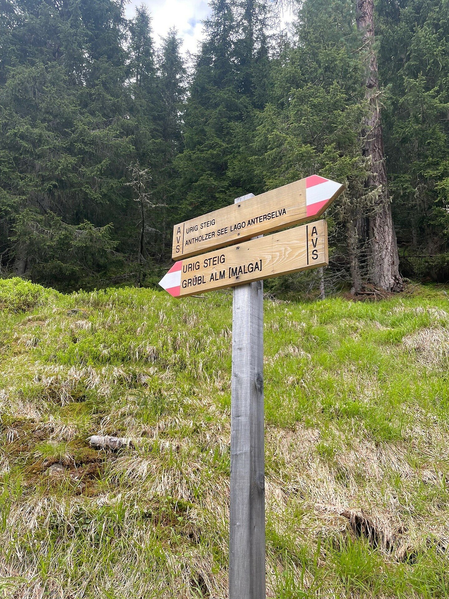 Ab Antholz Mittertal (Camping) > Weg Nr. 1 > Müllerkreuzl > Weg Nr. 9 > auf einer alten Militärstraße in gut angelegten Kehren zur Grübl Alm (nicht bewirtschaftet) > weiter über den Plötzlbach, auf dem Urigsteig, Weg Nr. 9a zurück ins Tal nach Antholz Obertal > Weg Nr. 1 zurück nach Antholz Mittertal.