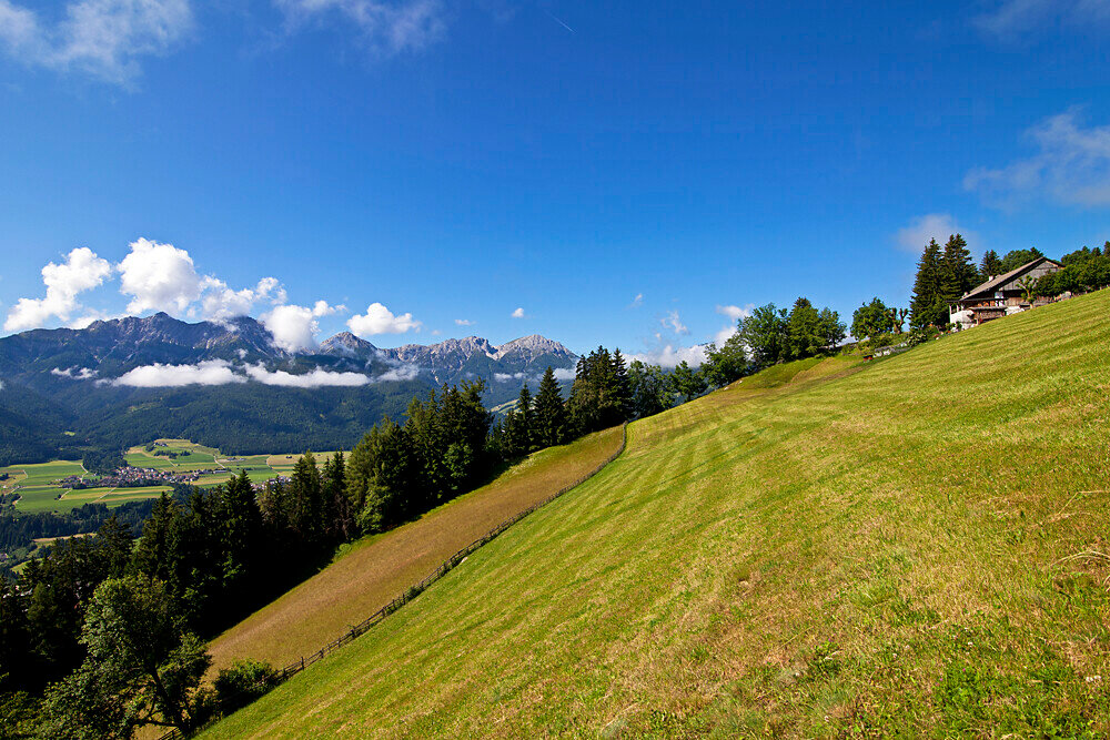Ab Niederrasen (Linde) > Kirchsteig Nr. 8 (steil) > Rauterhöfe / Oberrauterhof > links über Straße Nr. 22 oder rechts über Panoramaweg (Waldweg) > Redensbergerhöfe > asphaltierte Straße (Nr. 4) > Pfaffingerhöfe > Niederrasen.