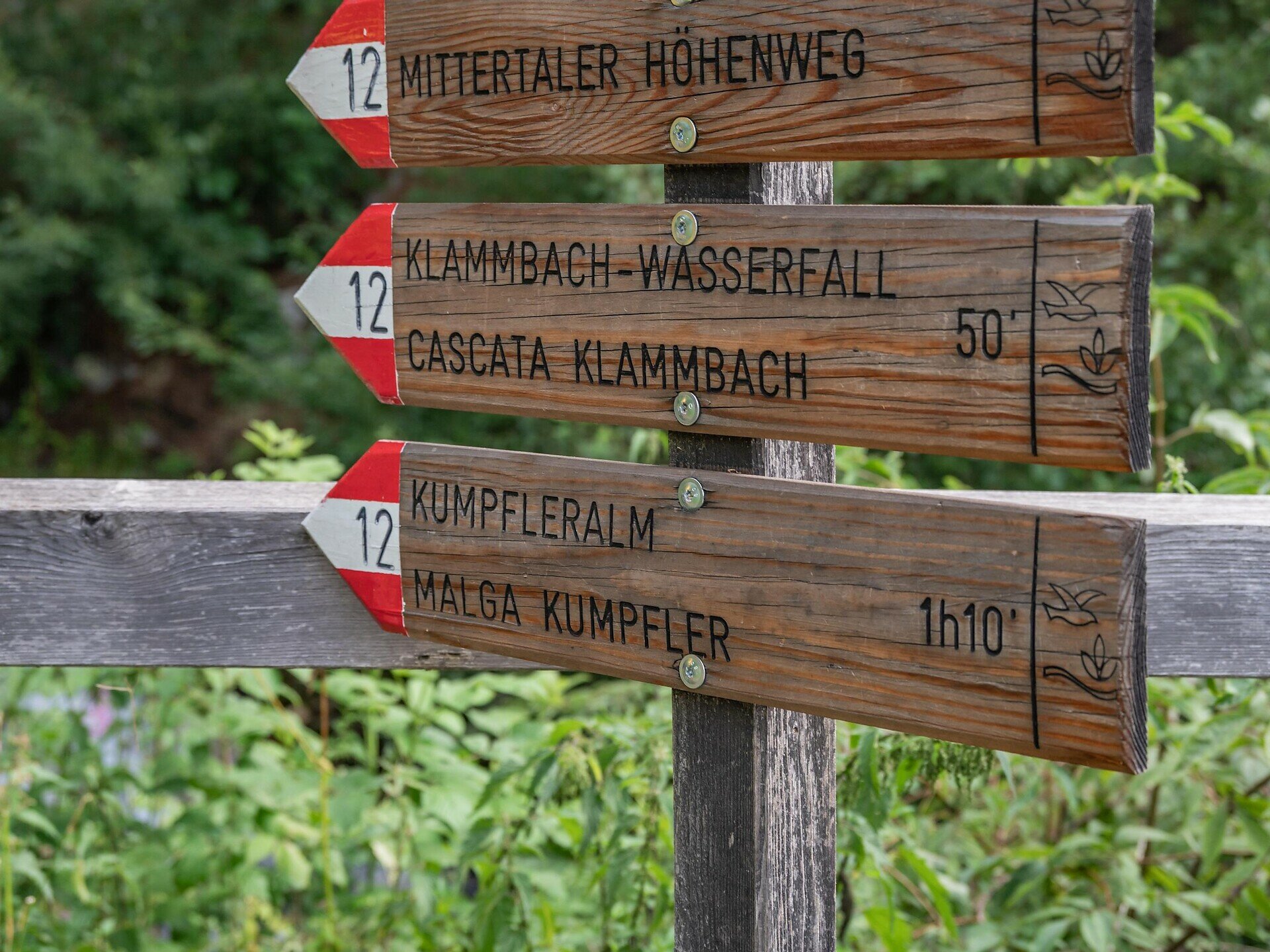 Ausgehend vom Festplatz in Antholz Mittertal führt der Weg zunächst zu den Eggerhöfen. Von dort folgt man dem Weg Nr. 12 durch schattigen Wald ansteigend bis zum Klammbach Wasserfall.