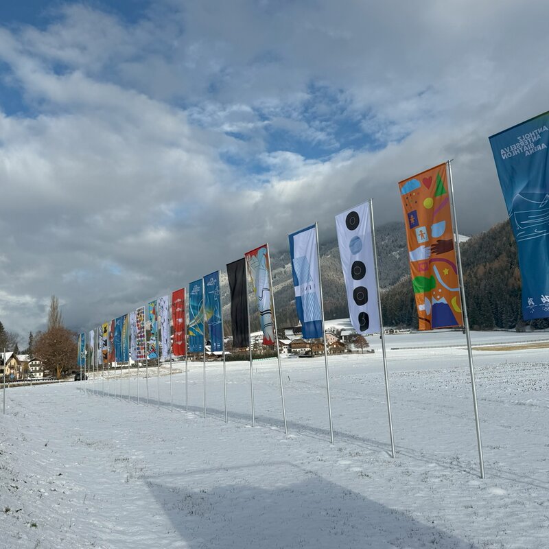 Der Südtiroler Künstlerbund (SKB) und das ECK Museum of Art haben Künstler:innen eingeladen, je eine Fahne zu entwerfen, welche im Rahmen der Olympischen Winterspiele 2026 am Eingang des Antholzertales, einem strategisch wichtigen Standort während der Spiele in Südtirol, wehen wird.