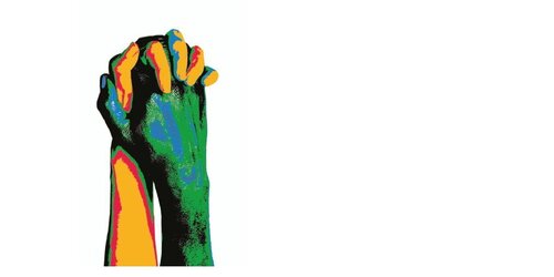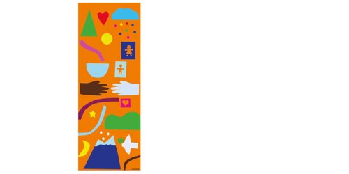 Drei Figuren, drei Kulturen: Sie verkörpern Heimat, Natur und Vielfalt. Vereint in Bewegung, vereint in ihrer Herkunft und Mehrsprachigkeit. Über ihnen schwirren Bienen – Sinnbilder für Fleiß und Zusammenhalt. Die Fahne steht für eine nachhaltige, gemeinsame Zukunft.