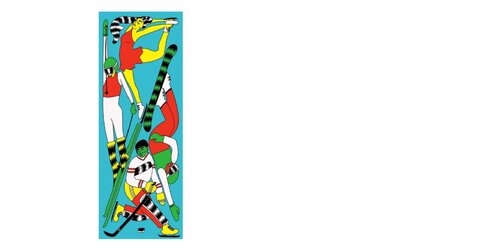 Die Flagge zeigt als zentrales Element ein stilisiertes Feuer: Symbol für Energie, Motivation und die olympische Idee. Das Feuer bildet den Rahmen und steht für Hingabe im Sport. Die kalten Farben verweisen auf den Winter, auf Spuren im Schnee und dem Eis, auf Bewegung, Anstrengung und Präsenz.
