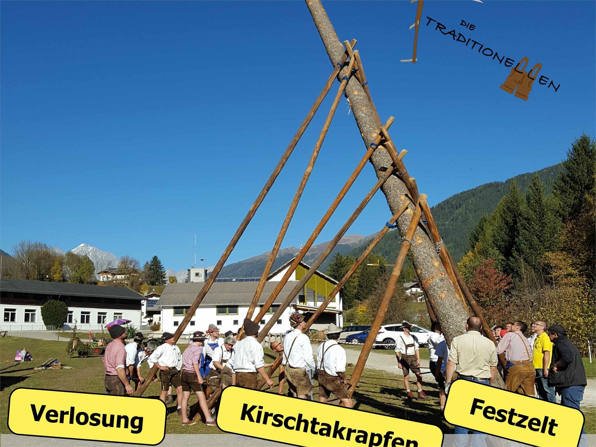 SAMSTAG: ab 13.30 Uhr: Aufstellen des Traditionellen "Kirschtabams" (Kirchtagsbaum); anschließend gemütliches Beisammensein im beheizten Festzelt.