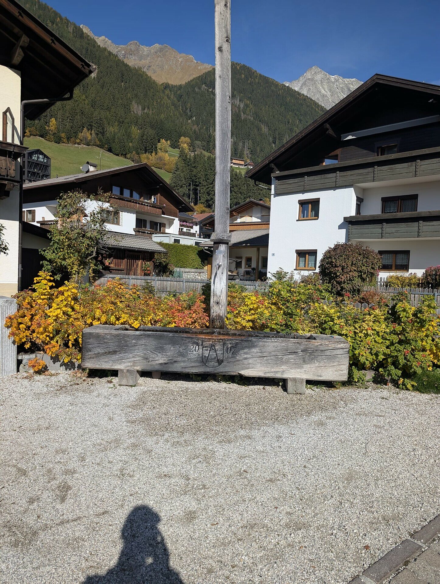 Dieser Trinkwasserbrunnen befindet sich in St. Georg-Straße beim Kreuz vor dem Supermarkt in Antholz Mittertal und ist frei und kostenlos zugänglich.