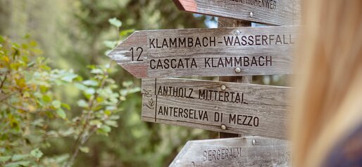 Er befindet sich oberhalb von Antholz Mittertal und gehört zu den Ausflugshighlights unseres malerischen Tals: Der rauschende Klammbach Wasserfall befindet sich auf einer Höhe von 1.508 m, ganz in der Nähe der Eggerhöfe. Erreichen könnt ihr ihn über eine ca. einstündige, leichte Wanderung, die euch und eure Familie zweifellos beeindrucken wird. Neben diesem wunderschönen Naturschauspiel, das ihr hautnah von der Plattform aus bewundern könnt, bietet sich euch zudem ein atemberaubendes Panorama auf das Antholzertal und die imposante Rieserferner-Gruppe.