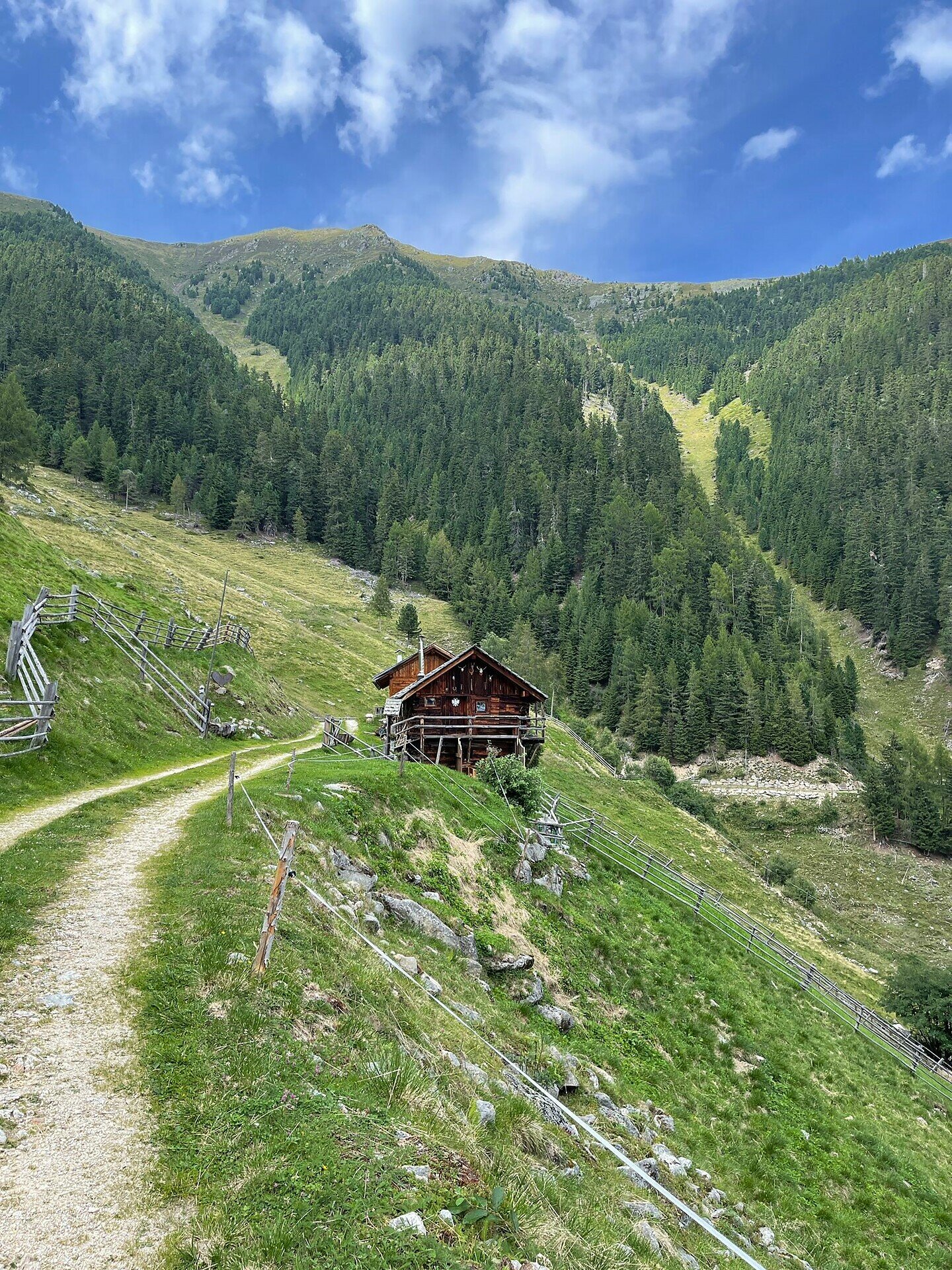 From the barbecue area Oberrasen > follow the mark n. 4B: first along the new built trail and then as soon as it meets the forest road always continue on it to the Laner Alm hut (hut not managed)