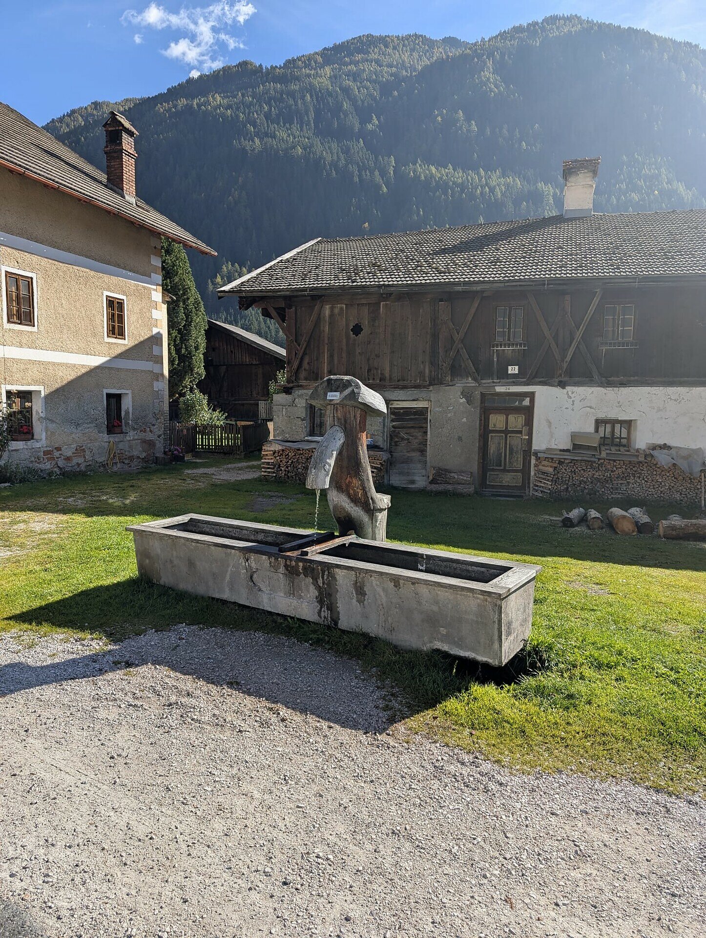 This drinking water fountain is located behind the Hotel Post in Antholz Mittertal and is freely accessible at no cost.