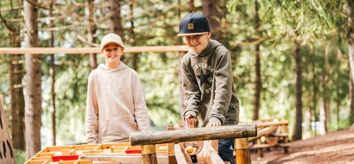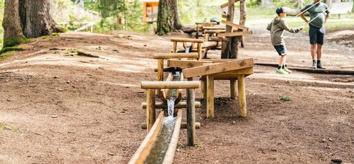At the "Wasserwaldile" adventure area, play, movement and water experiences take center stage – all surrounded by nature. Along the water course, children discover the different temperatures and effects of water in a playful way. A wobble bridge, balance trails and stepping stones provide extra adventure and plenty of fun.