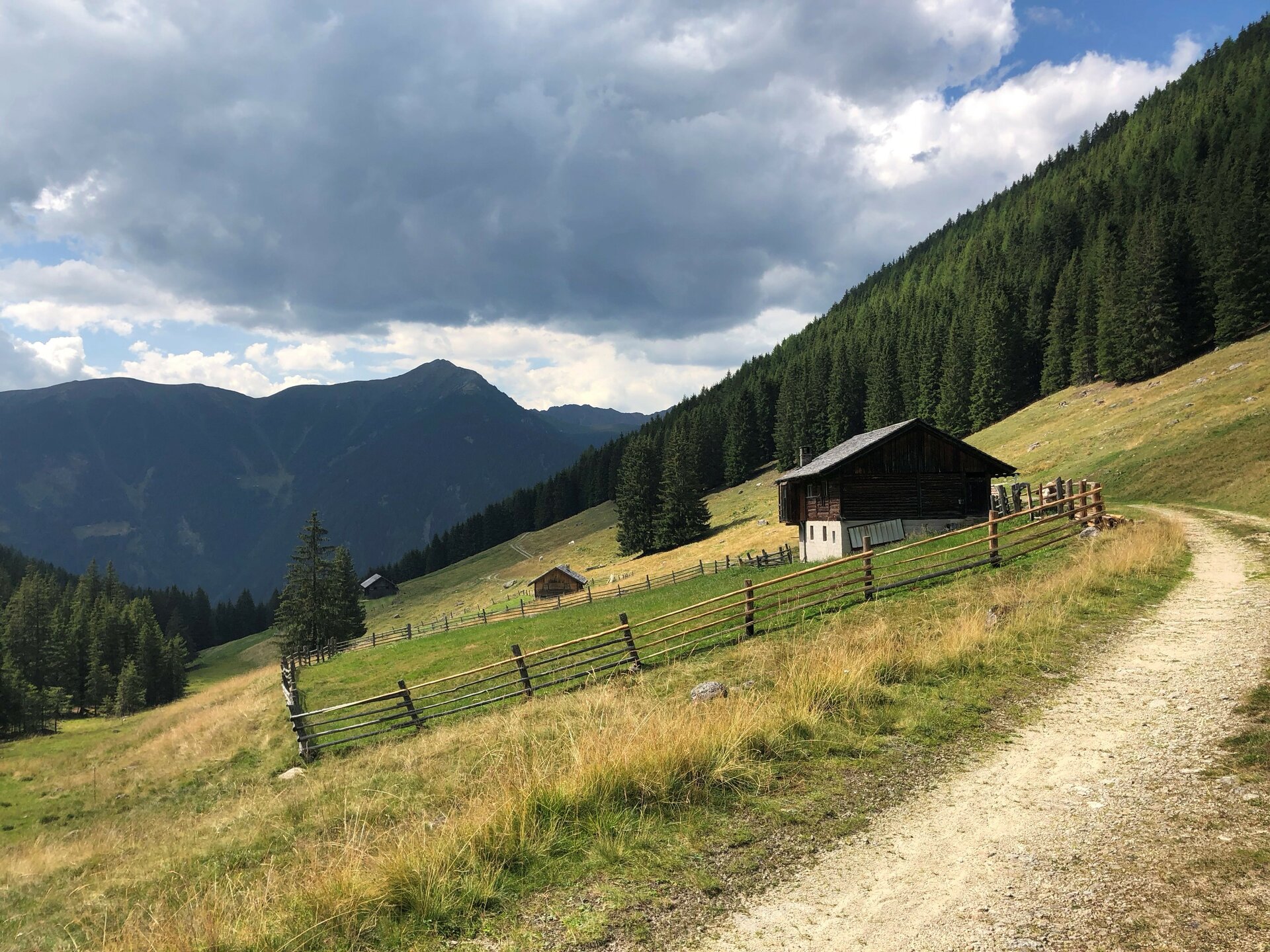 Dal laghetto di pesca ad Antholz Niedertal si sale alla Malga Hoftatt (gestita) e si prosegue seguendo le indicazioni per la Malga Langegg (non gestita).