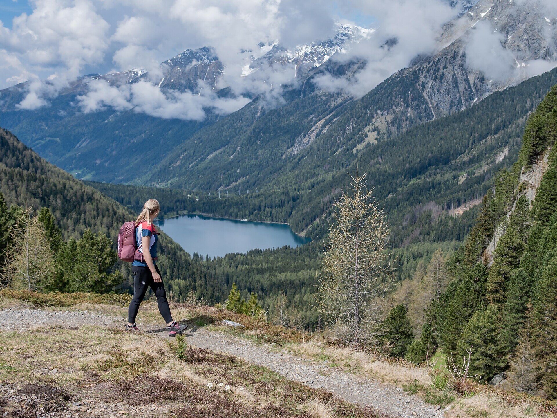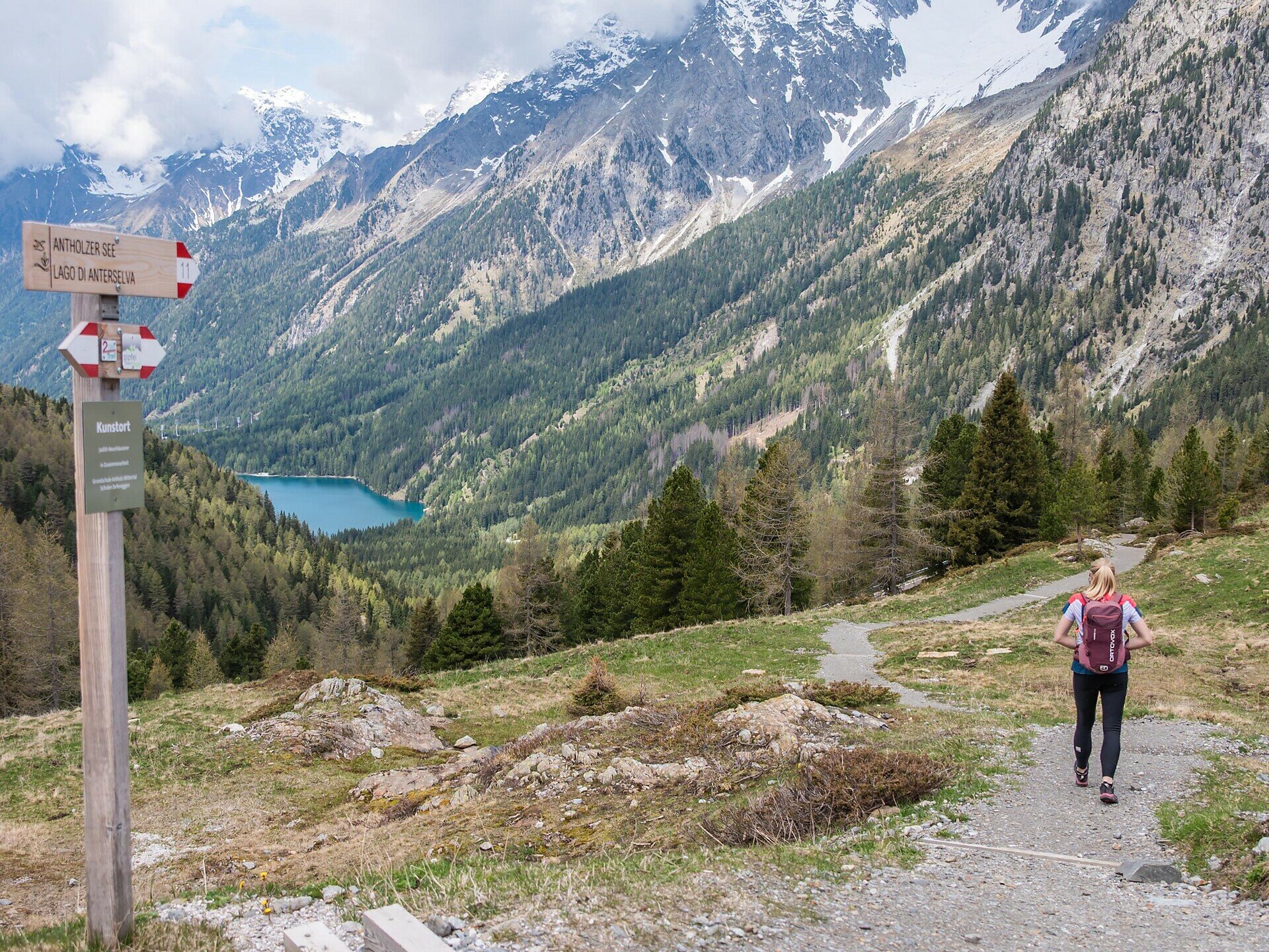 Nella parte finale del lago si imbocca il sentiero n. 11, che sale dolcemente attraverso il bosco ombreggiato. Il percorso ben segnalato è vario e offre splendide vedute sul lago e sulle montagne circostanti, fino a raggiungere il Passo Stalle (2.052 m), al confine con l’Austria.