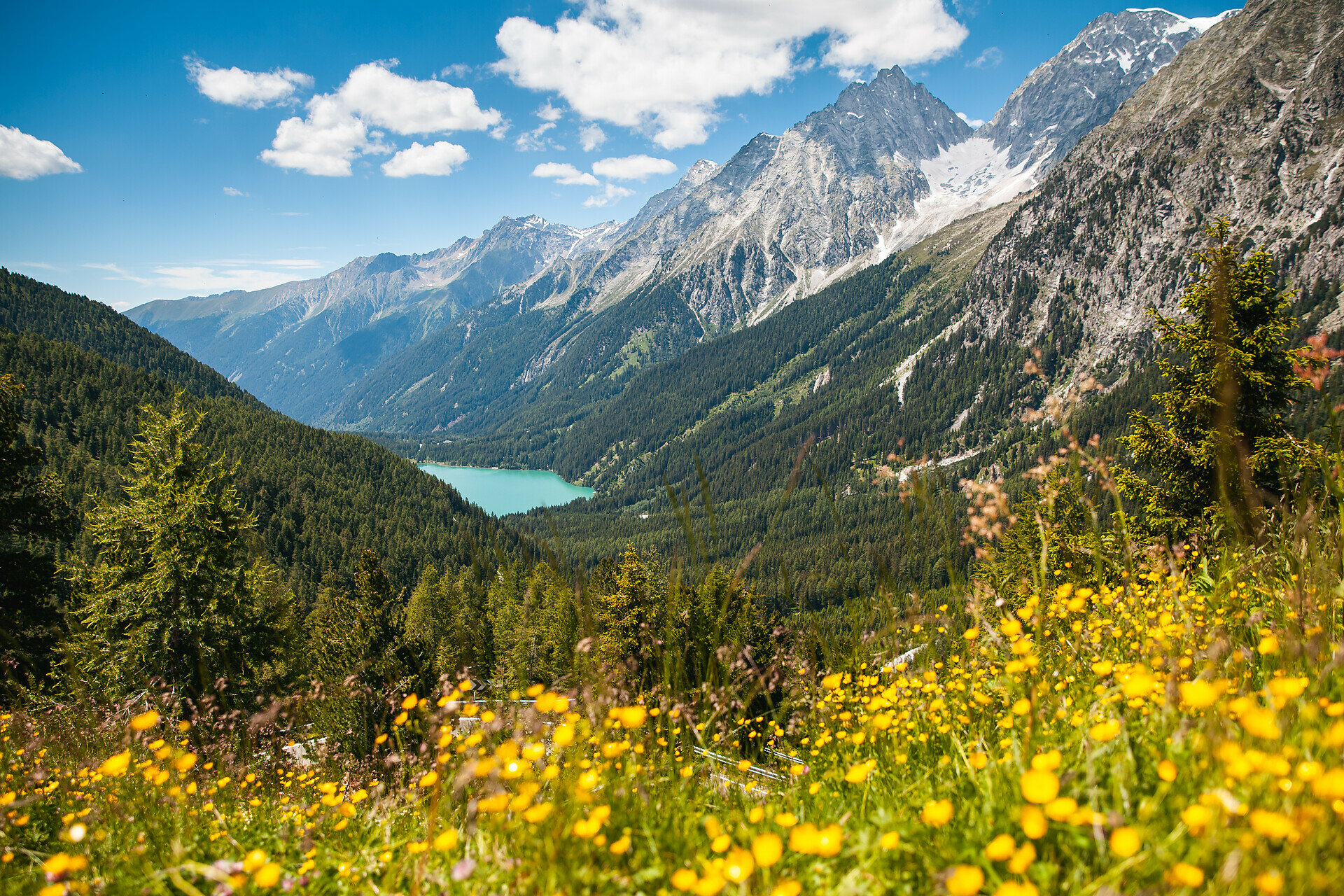 Parcheggio Lago di Anterselva > passando la Malga Huber avanti fino la baita Tiroler Hütte > attraversare il ruscello in direzione del lago > sempre avanti sulla sinistra e per il percorso istruttivo intorno al lago. L'escursione si può fare anche in direzione opposta.