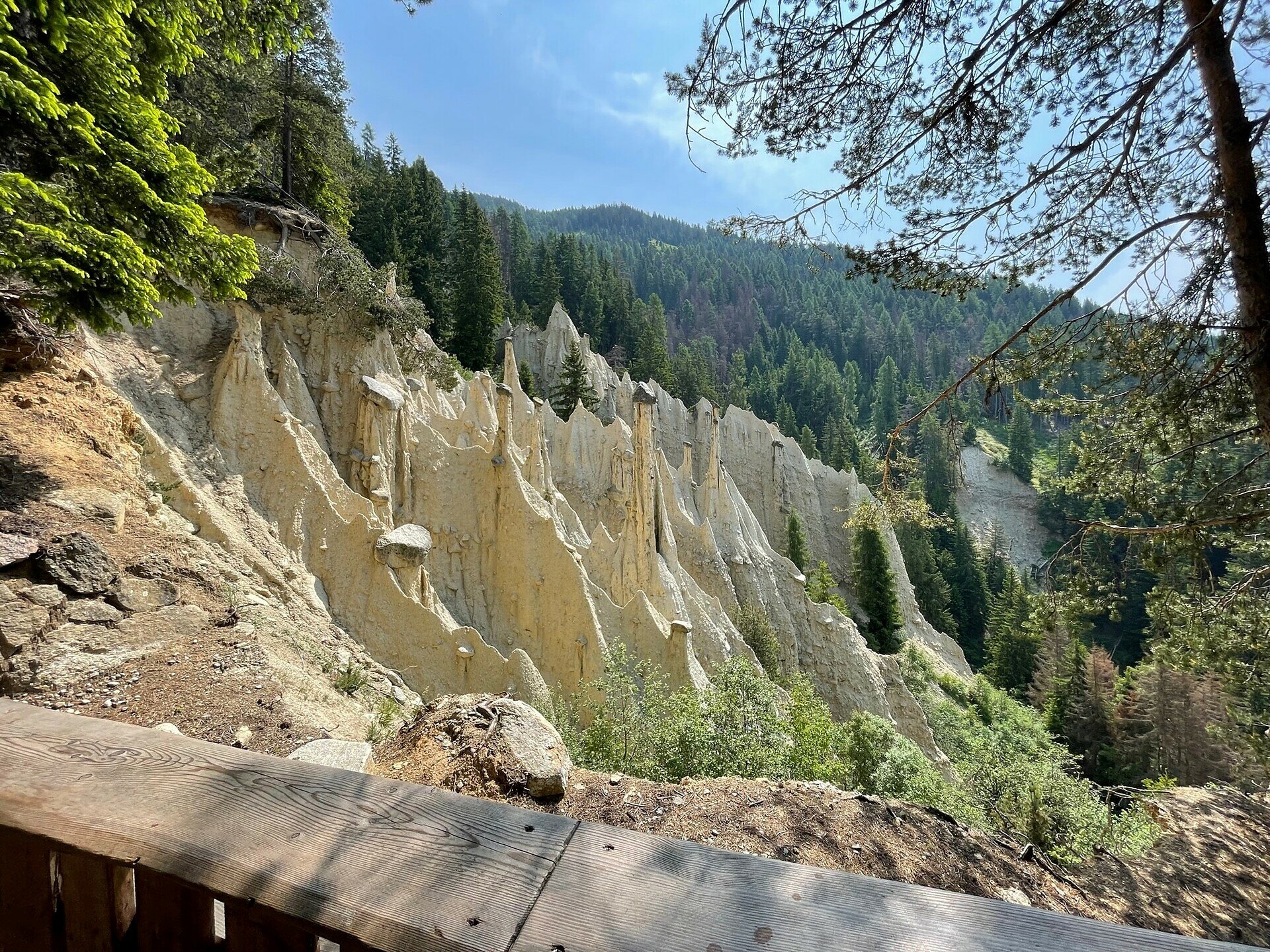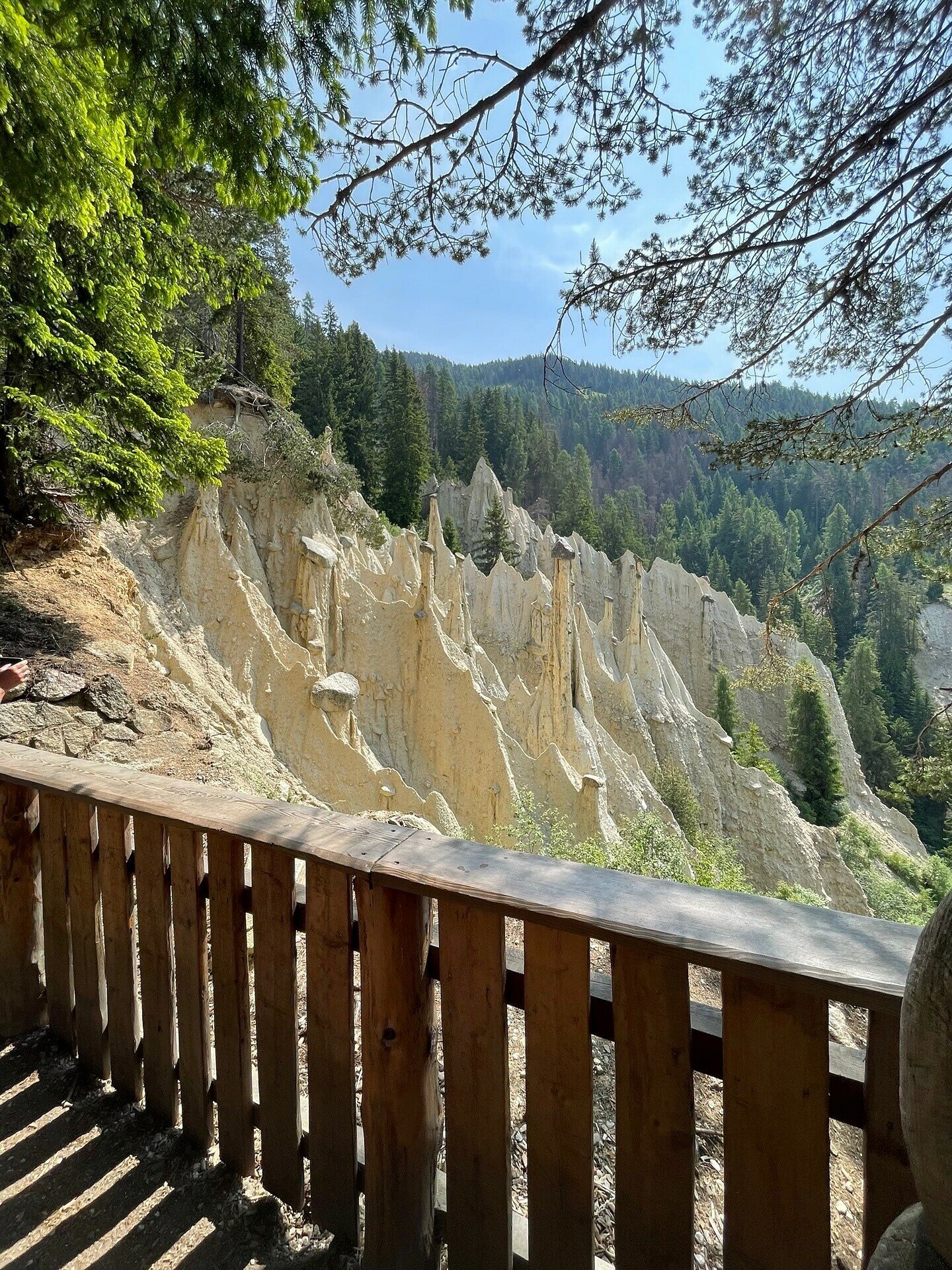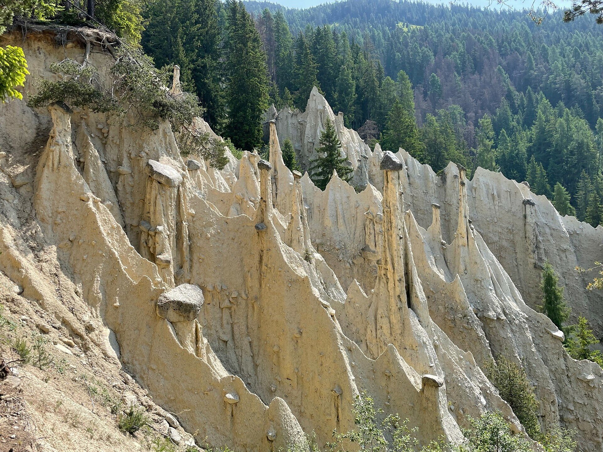 Da Rasun di Sotto o Rasun di Sopra > (sentiero no. 4 o 3) > Redensberg > imboccare i sentieri 4, 1a e 17 per Sopranessano > posto di ristoro Niedristhof > Piramidi di Terra (l'ultimo tratto è leggermente in pendenza). Scendere seguendo lo stesso percorso oppure proseguire attraverso Plata fino a Vila di Sopra (sentiero no. 16) e quindi a Perca. (Da qui eventualmente in autobus a Rasun).