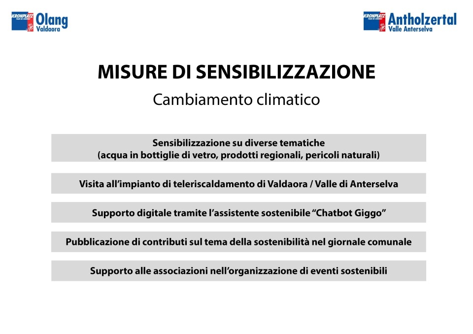Con l’elaborazione di un piano di adattamento al cambiamento climatico e del piano climatico comunale affrontiamo questo percorso in modo attivo e lungimirante. Vengono analizzati i rischi, definite misure concrete e rafforzata a lungo termine la resilienza della nostra valle.