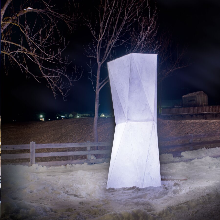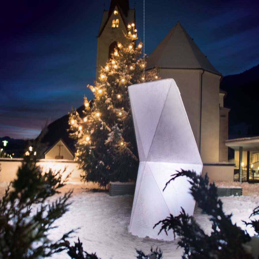 Il gruppo delle Vedrette di Ries, che delimita la Valle di Anterselva a Ovest, a oggi è il più grande ghiacciaio contiguo dell'Alto Adige. Masse di ghiaccio che svaniscono, ghiacciai che si ritirano, permafrost che si scioglie, il tutto associato ad un forte aumento delle emissioni di gas serra, hanno ispirato il team, spronandolo a lasciare un segno. Fonti di luce mistiche e vetro simile al ghiaccio si sono fusi in un'imponente simbiosi. Questa scultura intende far riflettere e sensiblizzare la società su quanto sta accadendo. Se il ghiacciaio delle Vedrette di Ries, un tempo, era ancora ricoperto di una spessa coltre candida, le immagini più recenti mostrano con chiarezza l'evidente ritiro del ghiaccio dovuto al cambiamento climatico.