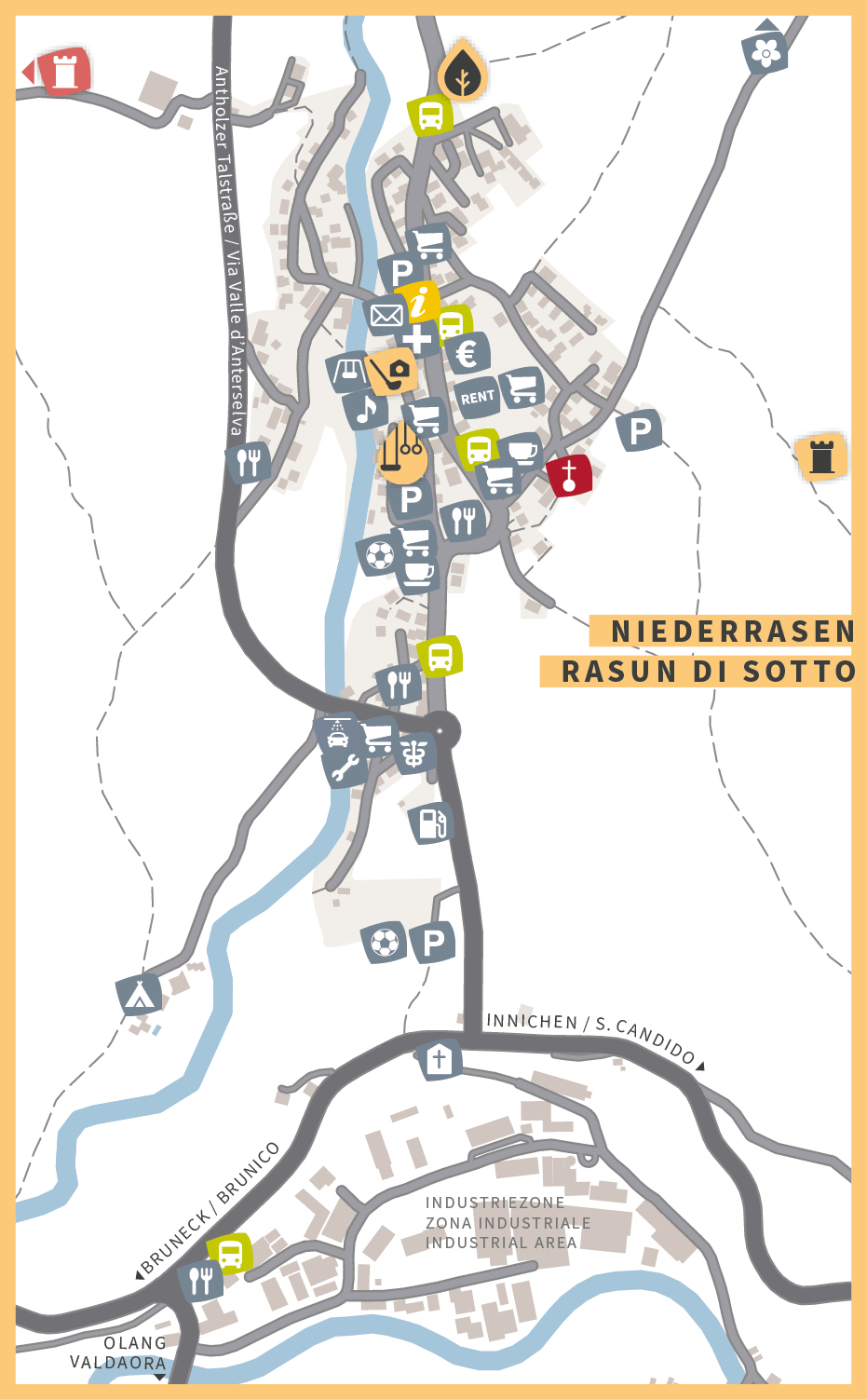 Rasun di Sotto, primo paese di Valle Anterselva la graziosa porta d'ingresso al paesaggio incontaminato della nostra valle blu. La sua posizione centrale, a circa 1.030 m di altitudine e a soli 5 km dal comprensorio sciistico Plan de Corones, lo rende un punto di partenza ideale sia per gli amanti della natura che per chi è in cerca di una vacanza attiva. Grazie ad un’ampia offerta di escursioni e tour in bicicletta, si possono vivere in ogni stagione dell'anno emozionanti esperienze in valle e sulle circostanti cime del Parco Naturale Vedrette di Ries-Aurina.