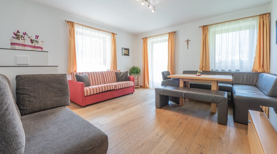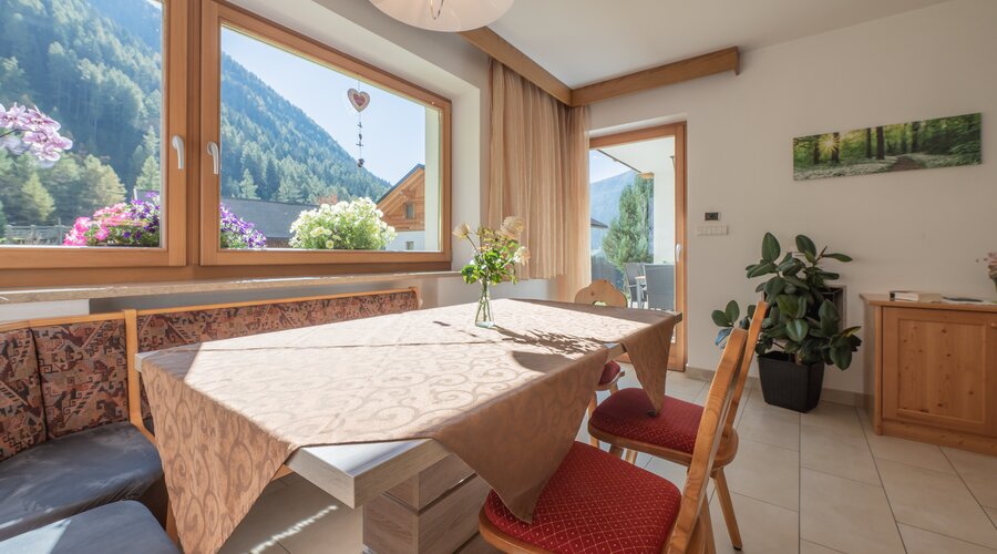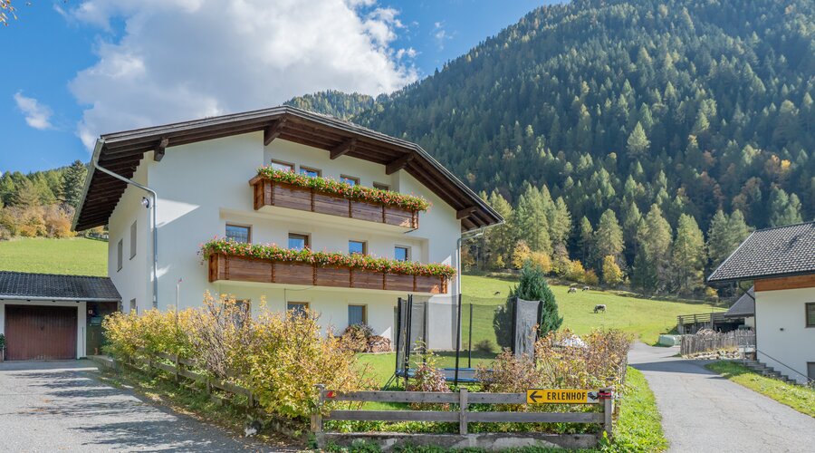 Unsere schöne geräumige Ferienwohnung im Haus Erlenhof befindet sich im Erdgeschoss, mit Terrasse und direktem Zugang zum Gemeinschaftsgarten. Sie eignet sich für Familien oder auch für Paare. Die Wohnung ist circa 90 Quadratmeter groß, hat 2 Schlafzimmer, 2 Bäder mit Bodenheizung, große Küche und Wohnzimmer mit Schlafmöglichkeit. Sie wohnen mitten in der Natur, von Wiesen, Wäldern und Bergen umgeben, abseits von der Straße. Bis ins Zentrum Antholz Mittertal sind es ungefähr 1,5 bis 2 Kilometer.