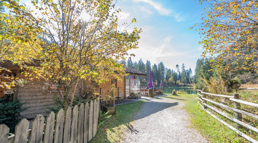 Während Erwachsene bei einem erfrischenden Getränk oder einer kleinen Stärkung die Aussicht auf das glitzernde Wasser und die umliegende Bergwelt genießen, kommen auch die Kleinen voll auf ihre Kosten: verschiedene Spielmöglichkeiten bieten viel Platz zum Toben und Entdecken. Wer Lust auf ein besonderes Naturerlebnis hat, kann beim Fischen am Teich sein Glück versuchen.