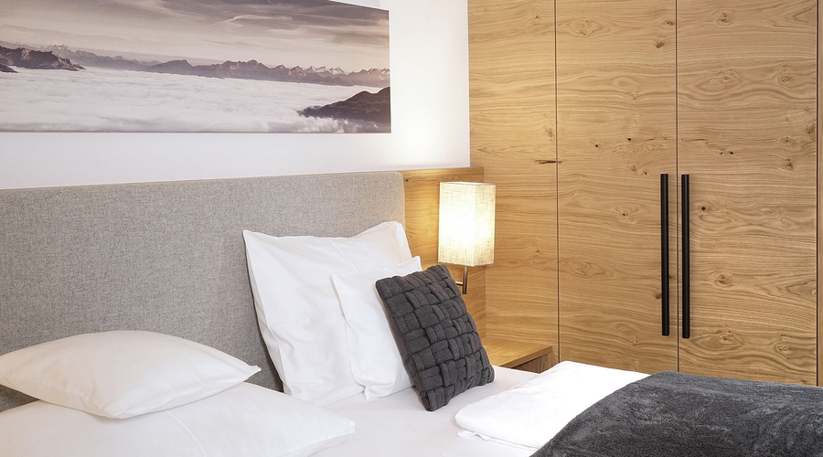 Ausstattung: Doppelbett, Doppelschlafcouch, Balkon, Bettwäsche vorhanden, Wohnküche, Kaffeemaschine, Elektroherd, Geschirrausstattung, Dusche/Bad, Badetücher, TV, Haupthaus, Südseite, Apartment