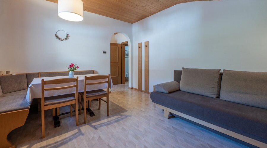 Sie verfügt über ein Schlafzimmer mit drei Betten sowie eine Wohn-Küche mit kompletter Ausstattung. Das Bad mit Dusche und WC, ein Balkon und der schöne Garten laden zum Entspannen und Genießen der Bergluft ein.